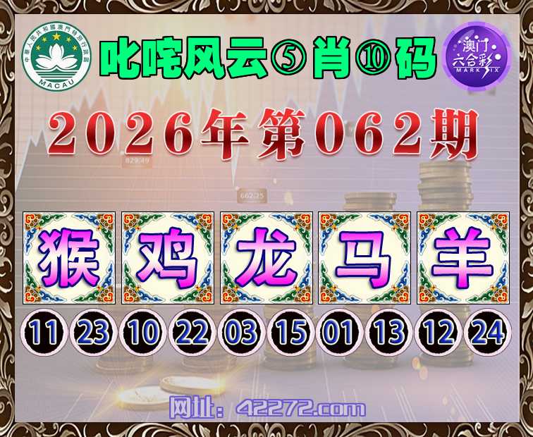 062期:《叱咤风云》 ⑤肖⑩码【猴鸡龙马】开:羊24